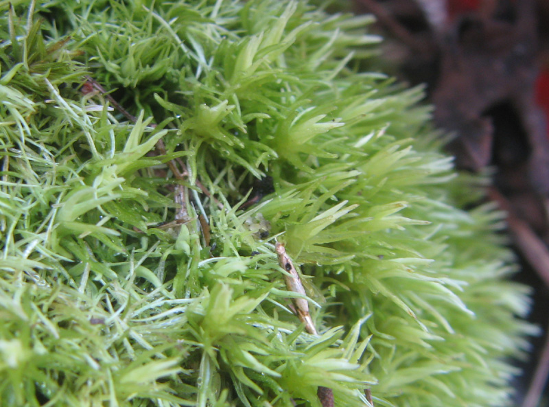 葉は細長く、白っぽい。ホソバオキナゴケに似ています。