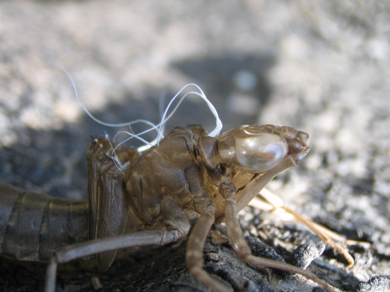 ヤゴ(抜け殻)の横顔です。目が大きいですね。翅が小さく折りたたまれています。