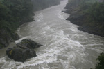 台風22号の影響で大雨が降り,増水した飛騨川.2004年10月9日.