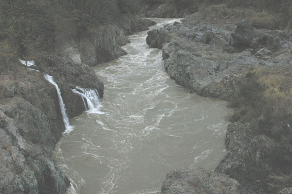 台風22号の影響で大雨が降り,増水した飛騨川.2004年10月9日.