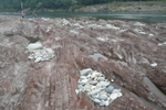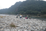 岐阜県鵜沼の木曽川河床のようすです。美濃帯のチャート層のうえに、