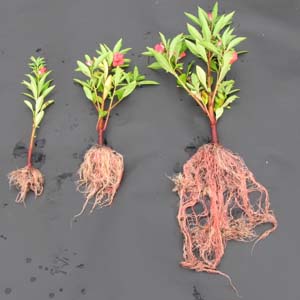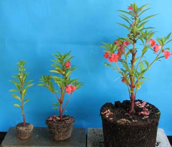 土の量の異なる鉢に植え替え,50日後のものです。