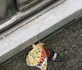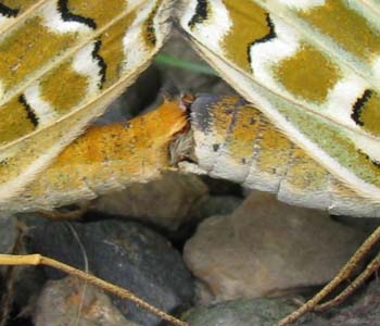 パンジーやビオラ、またはその近くの建物などに産卵していました。