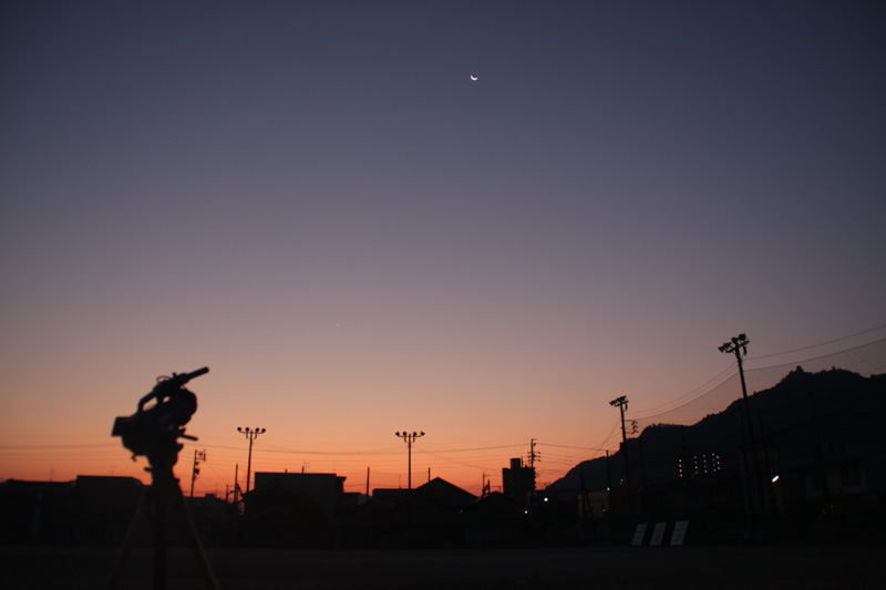 2009年10月15日、6時15分ごろ、日の出前に月と金星を撮影しました。