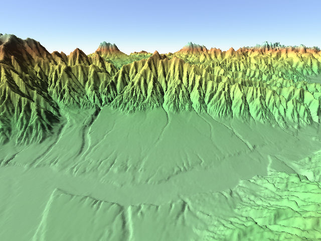 南アルプルの方から、南箕輪小学校のある平地とその奥の木曽山地の地形をオーバーに表現した図です.