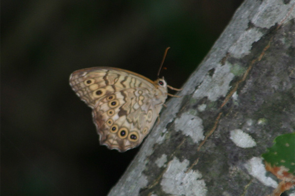ジャノメチョウの仲間.食草はタケ.クリの幹に止まっていました.