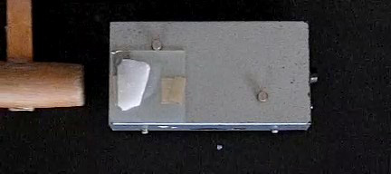 台車にドライアイスを載せてから、木槌で台車をたたいて急発進させました。