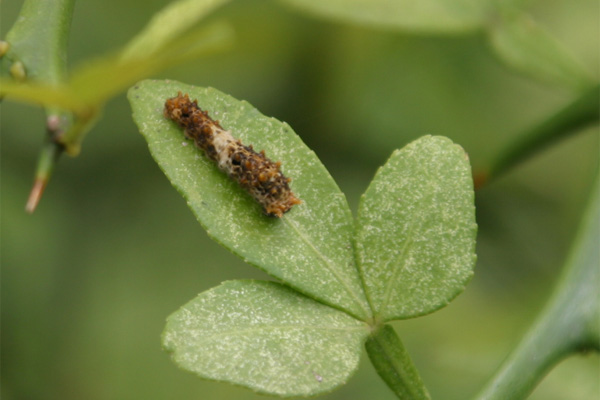 住人がいなくなったと思ったら,新たにカラタチの木に1センチぐらいの幼虫がみつかりました.