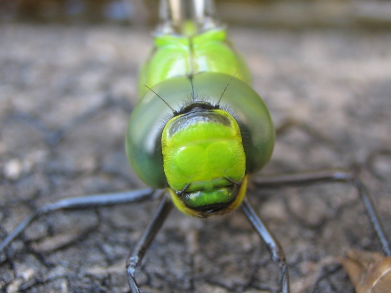 ヤゴの顔は平べったいのに、成虫になると丸くなるんですね。複眼も大きく丸くなっています。