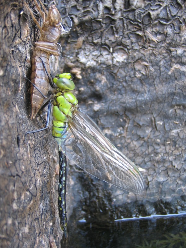 羽化したてなので、複眼や翅が美しいです。時々翅を震わせて、飛ぶ準備をしていました。