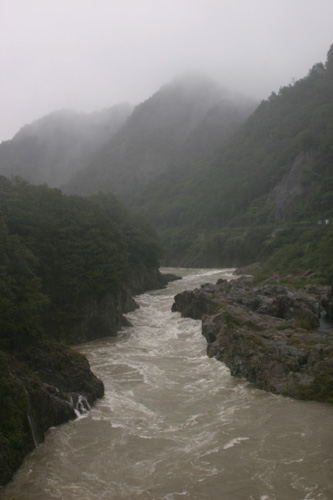 台風22号の影響で大雨が降り,増水した飛騨川.2004年10月9日.