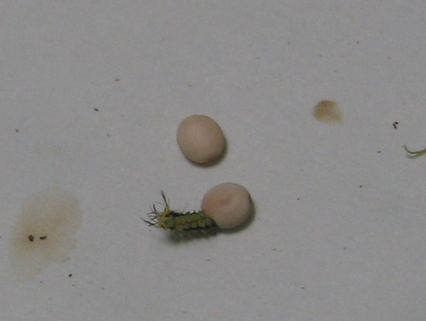 孵化直後、あるいは孵化途中の幼虫がたくさんいました。