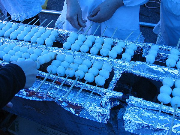 前日大勢でひとつひとつ握ったもちを、まずは下焼きします。