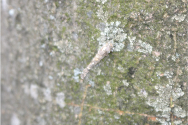 樹木の幹にいたみのむし.移動中でした.
