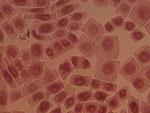 本巣松陽高校の生物Iの授業で生徒が作成したプレパラートを観察しました。