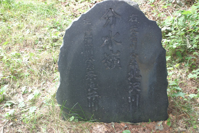 権兵衛峠にある分水嶺の碑。西側は奥白川から奈良井川へと通じ、
