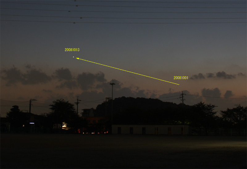 2008年10月13日,18時01分、青山中学校のグランドで、西の空を撮影しました。