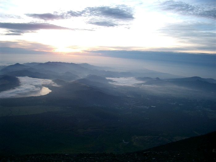2002年8月、山頂にて撮影しました。下に見える湖は山中湖。