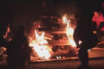 キャンプファイヤーで火をつける瞬間。