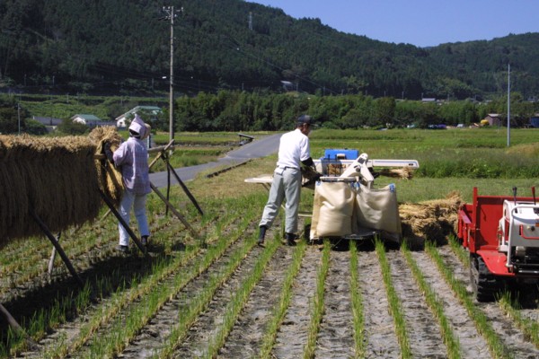 脱穀をしています.