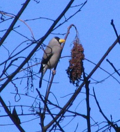 アトリ科.細くて太いくちばしで木の実を食べる.