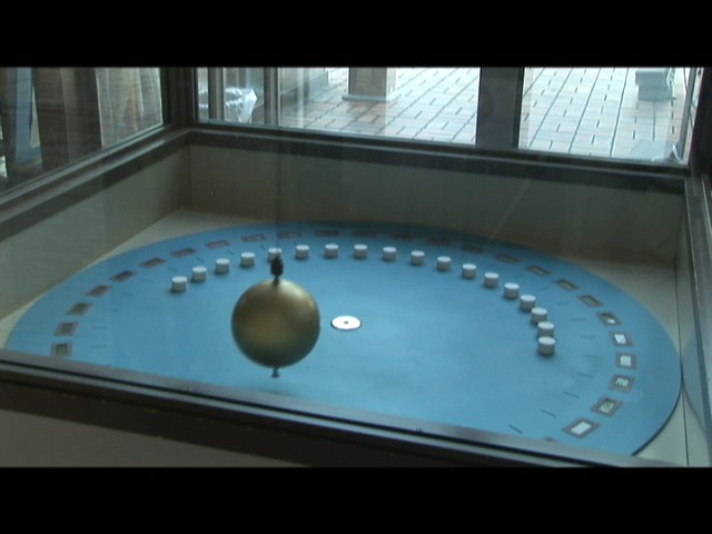 2006年8月25日、岐阜市科学館のフーコーの振り子を撮影。