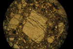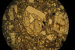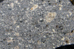 灰色で、白色の岩片が多数含まれています。