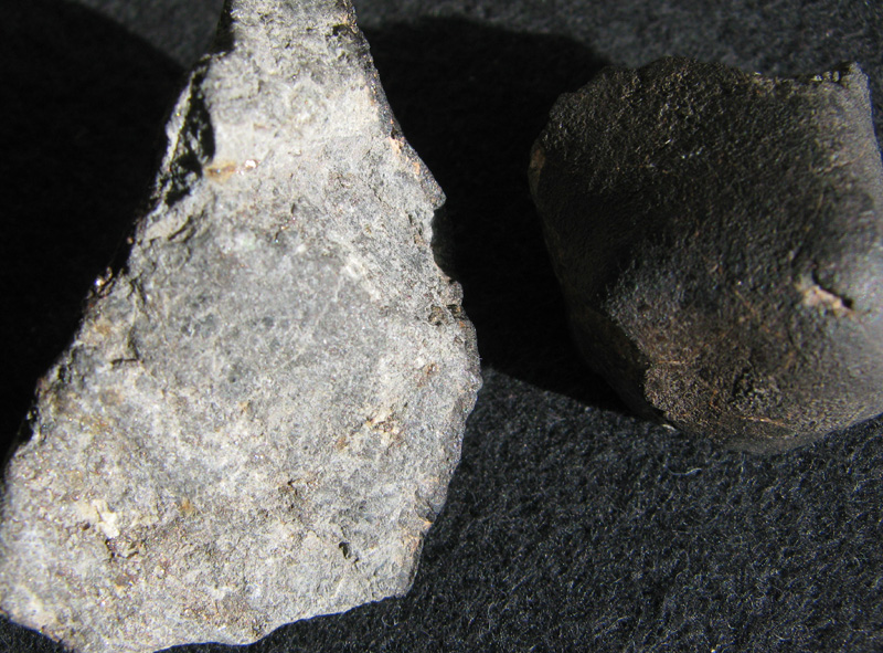 黒色の表皮があり、内部は灰色。金属粒子を多く含む。