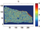 黒っぽい色をした部分はインパクト・メルトであると考えられるが、相対的にCaに富んでいる。