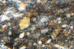 角張った形をしたさまざまな岩片や鉱物片からなる岩石。