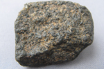 重量は、25g。片側は溶融表皮がある。斑れい岩。