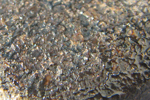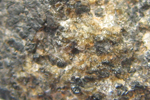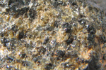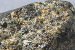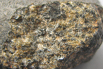 黒っぽい鉱物はかんらん石、黄色っぽい鉱物は輝石、透明な鉱物はマスケリナイト。