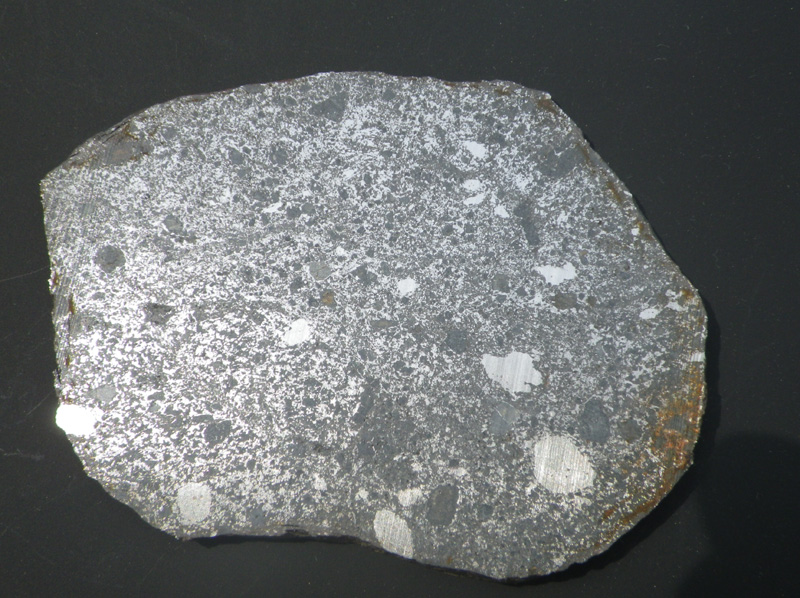 鉄ニッケル合金に珪酸塩の岩片(<1mm)が含まれている。