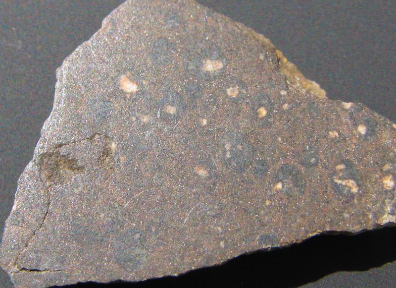 丸い粒が含まれていますが、典型的なコンドリュールのようではありません。