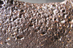砂で磨かれた面にコンドリュールがたくさんみられます。