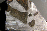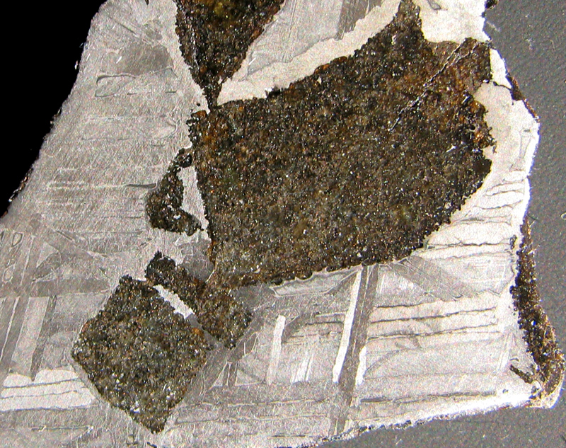 鉄ニッケル合金のなかにH6コンドライトの岩片が含まれているという特異な産状を示す。