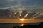 雲の切れ間から差し込んでくる太陽の光線のようすです.