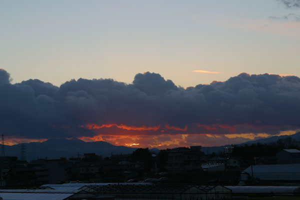 2002年12月10日冬型の気圧配置で関が原方面に雪雲が流れてきました。