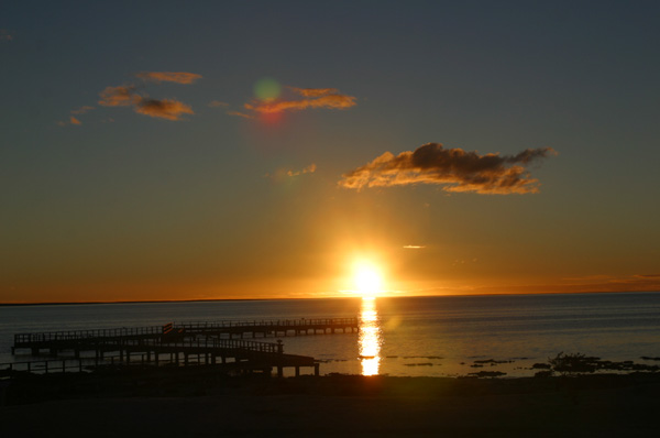 2004年6月ハメリーンプール,日没を迎えるストロマトライトの浜辺.