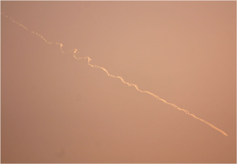 2005年4月5日日没のころ,変わった飛行機雲がみられました.