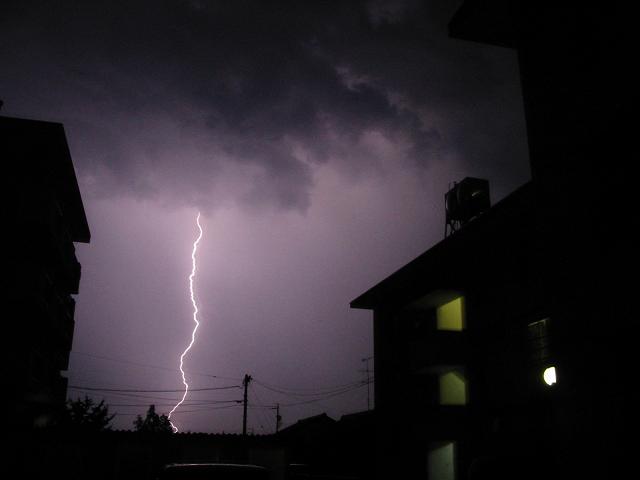 激しい雨と共に、落雷が幾度も起こり、雷光が東や北の空を走りました。