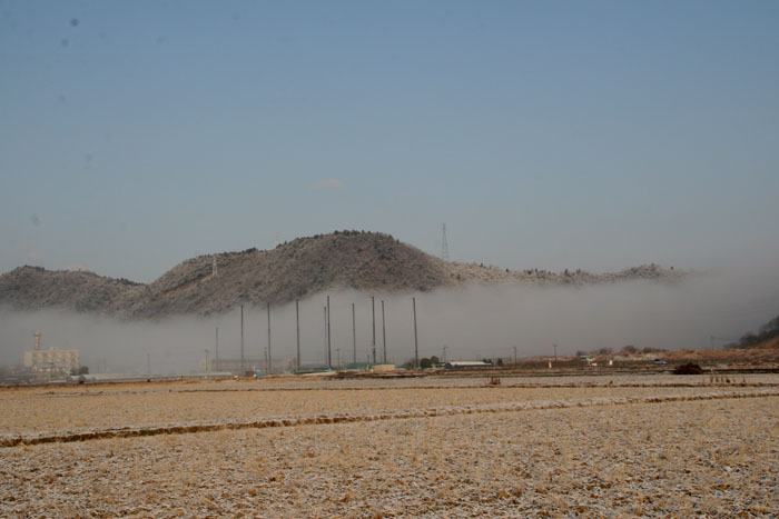 2007年2月2日。日の出とともに霧がでました。