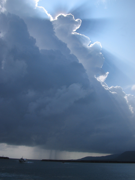 2006年9月7日朝、西表島で撮影.積乱雲の真下では雨が降っていることがわかります。