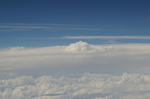 静岡市周辺では,積乱雲の発達が激しく,層状の雲から頂上が突き出して見えます.