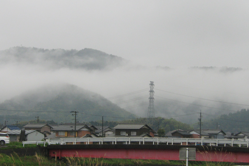 雨の日に近くの山に雲がかかっていました。