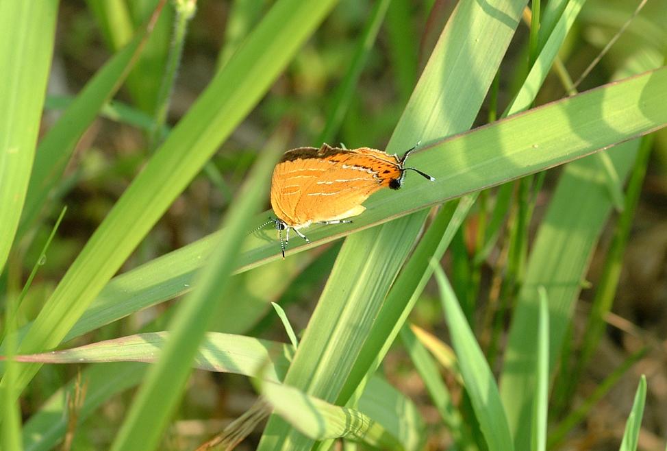2005年5月29日、緑原の早朝、朝露をおいしそうに吸っている。