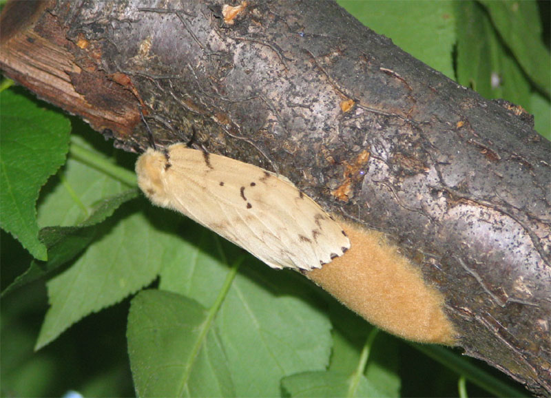 2006年7月5日、山県市で撮影.マイマイガの♀が卵を産んでいました。