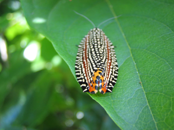 オレンジ色の飛ぶ虫。とまったらビロウドハマキでした。