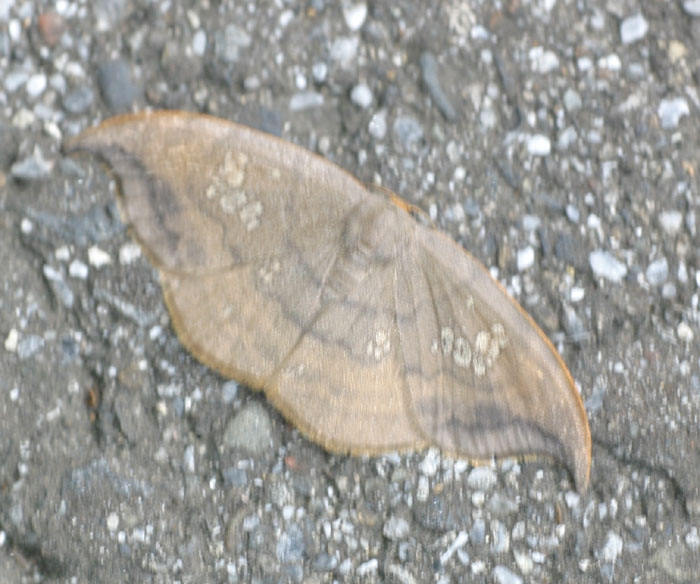 草むらから道路に舞い降りました。カギバですね。体長1.5センチぐらい。