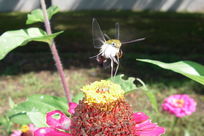 オオスカシバが花の蜜を吸いにきていました。